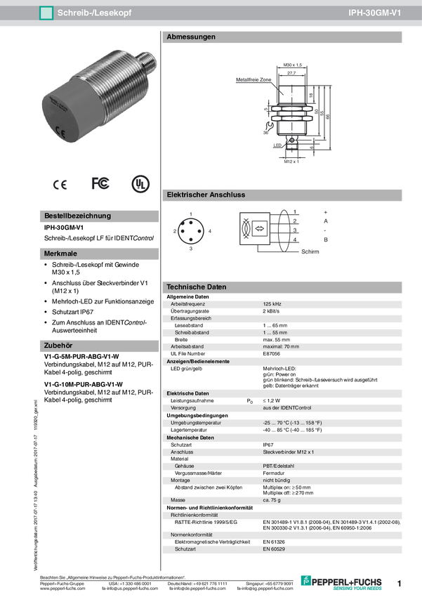 Pepperl+Fuchs 119320 Głowica odczytu/zapisu RFID IPH-30GM-V1 1 szt.