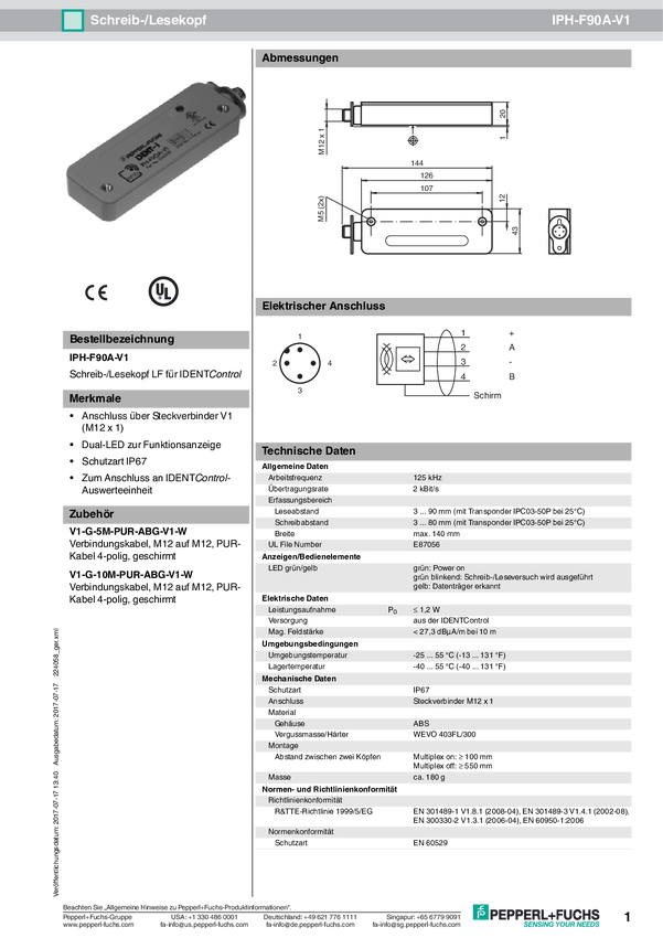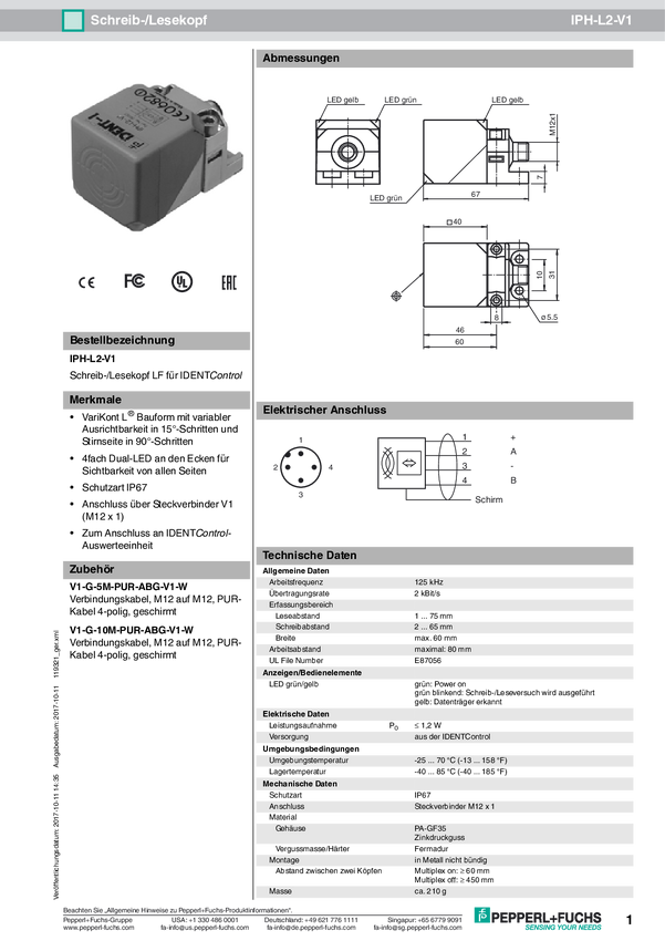 Pepperl+Fuchs 119321 Głowica odczytu/zapisu RFID IPH-L2-V1 1 szt.