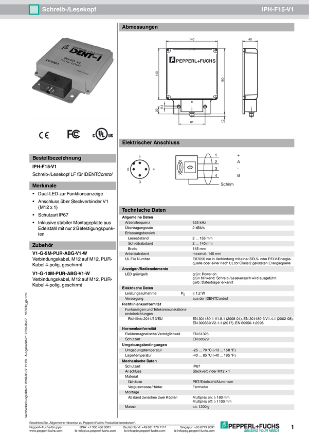Pepperl+Fuchs 127639 Głowica odczytu/zapisu RFID IPH-F15-V1 1 szt.