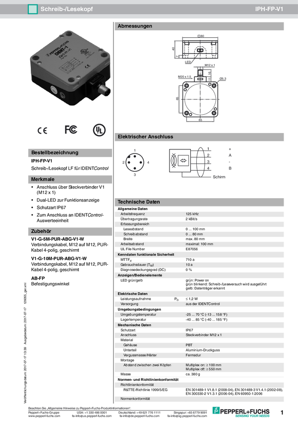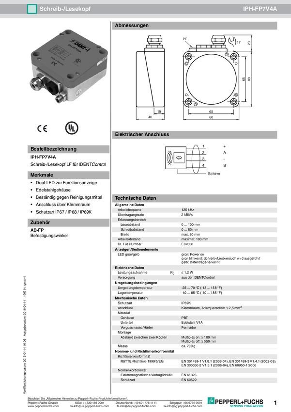 Pepperl+Fuchs 126055 Głowica odczytu/zapisu RFID IPH-FP-V1 1 szt.