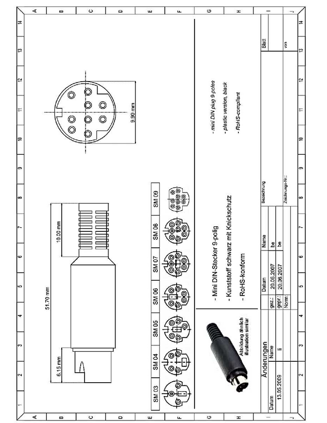Wtyk; DIN mini; żeńskie; 8 pin; lutowane; na przewód; z odgiętką; MJ-372/8; 00010; RoHS