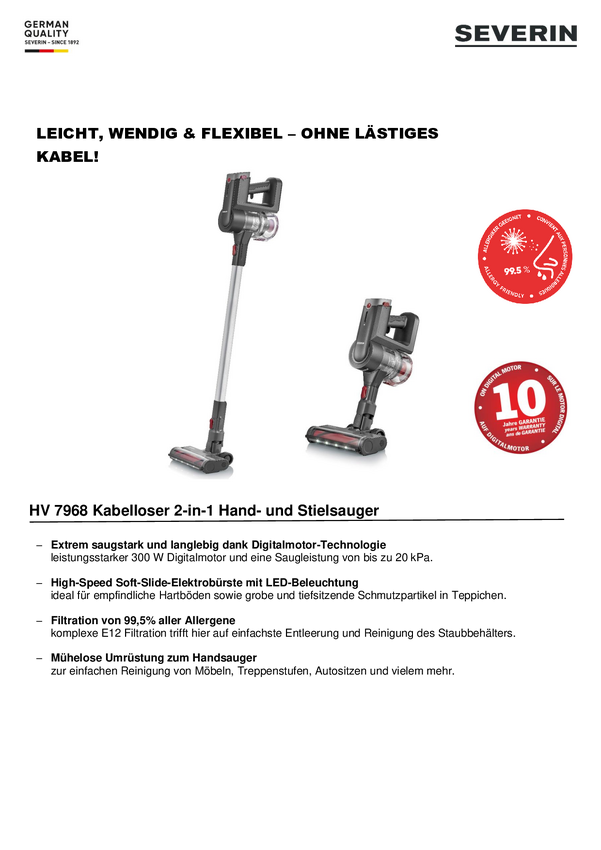 Severin S'Power HV 7968 Odkurzacz ręczny, akumulatorowy