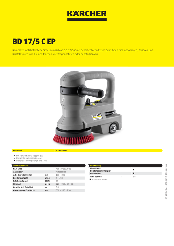 Odkurzacz pionowy Kärcher Professional BD 17/5 C Ep 1.737-107.0, 1 szt.