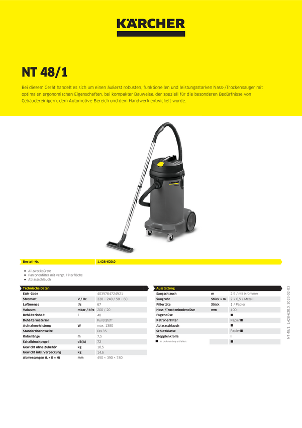 Odkurzacz do pracy na sucho i mokro Kärcher Professional NT 48/1 1.428-620.0 48 l 1 szt.