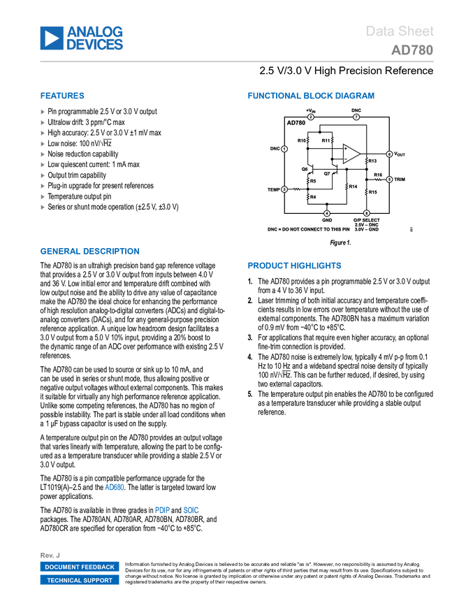 PMIC - napięcie odniesienia Analog Devices AD780ANZ AD780ANZ, 1 szt.