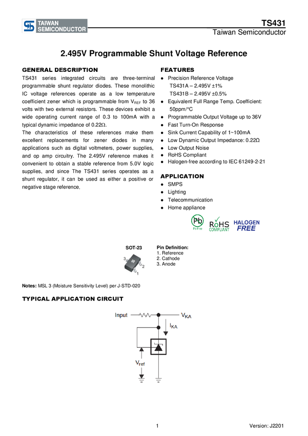 PMIC - napięcie odniesienia Taiwan Semiconductor TS431BCX RFG SOT-23