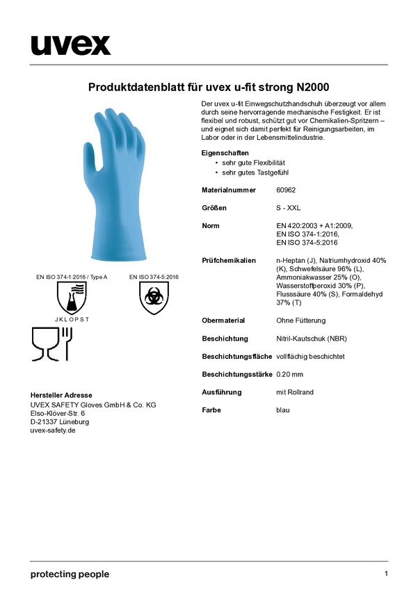 uvex 6096207 u-fit strong N2000 Rękawice odporne na chemikalia Rozmiar rękawic: S EN 420:2003+A1:2009, EN 374-5:2016, EN