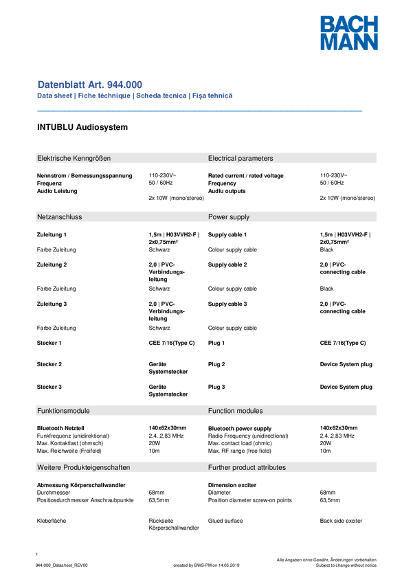 Głośniki do telefonów, odtwarzaczy MP3/MP4 Bachmann 944000