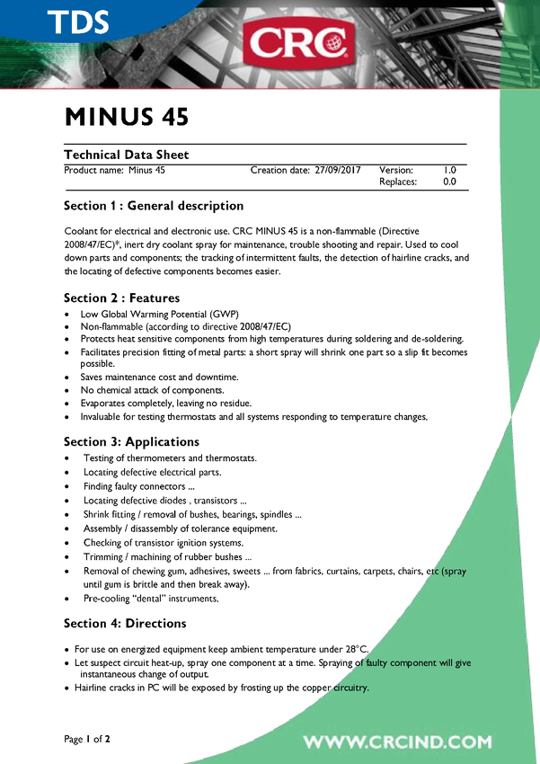 Spray chłodzący niepalny CRC MINUS 45 33164-AA 500 ml