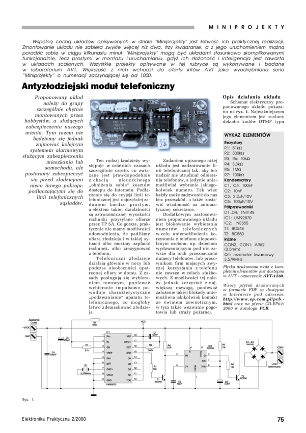AVT1260 A Antyzłodziejski moduł telefoniczny - płytka drukowana
