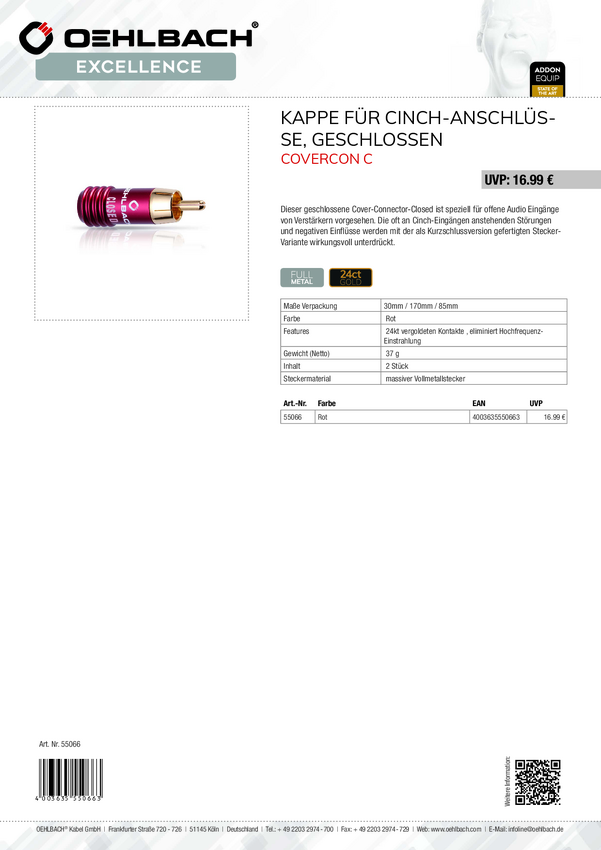 Oehlbach Sound-AD 90 Adapter kątowy cinch [1x złącze męskie RCA/cinch - 1x złącze żeńskie RCA/cinch]