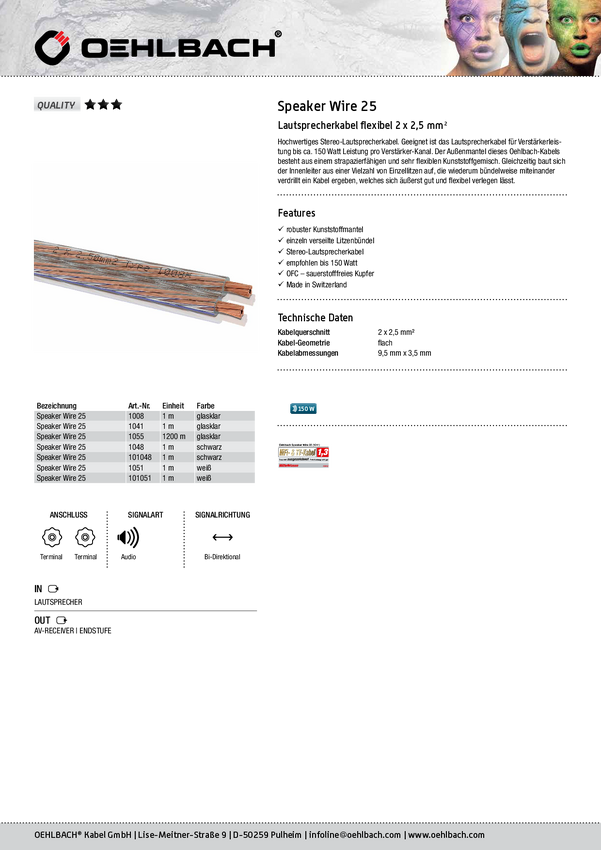 Oehlbach 1008 Przewód głośnikowy 2 x 2.5 mm² przeźroczysty Produkty w metrach bieżących
