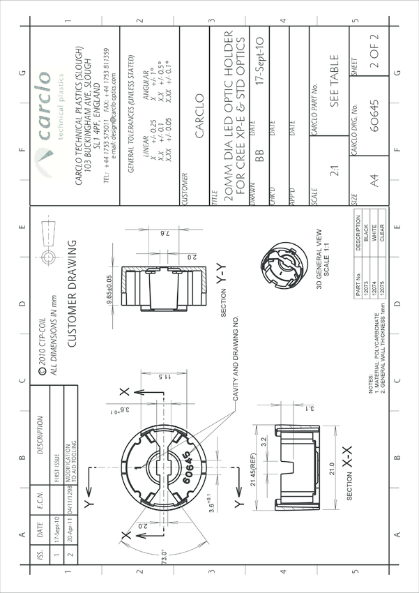 Holder Carclo 12073, 20mm, okrągła, do diod Cree serii XP, XT