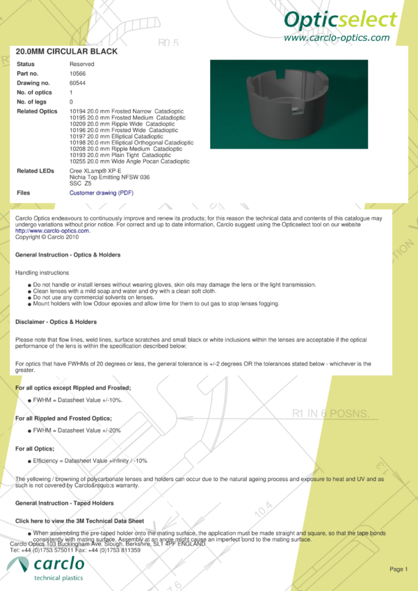 Holder Carclo 10566, 20mm, okrągły, czarny, do diod Cree serii XP, XT
