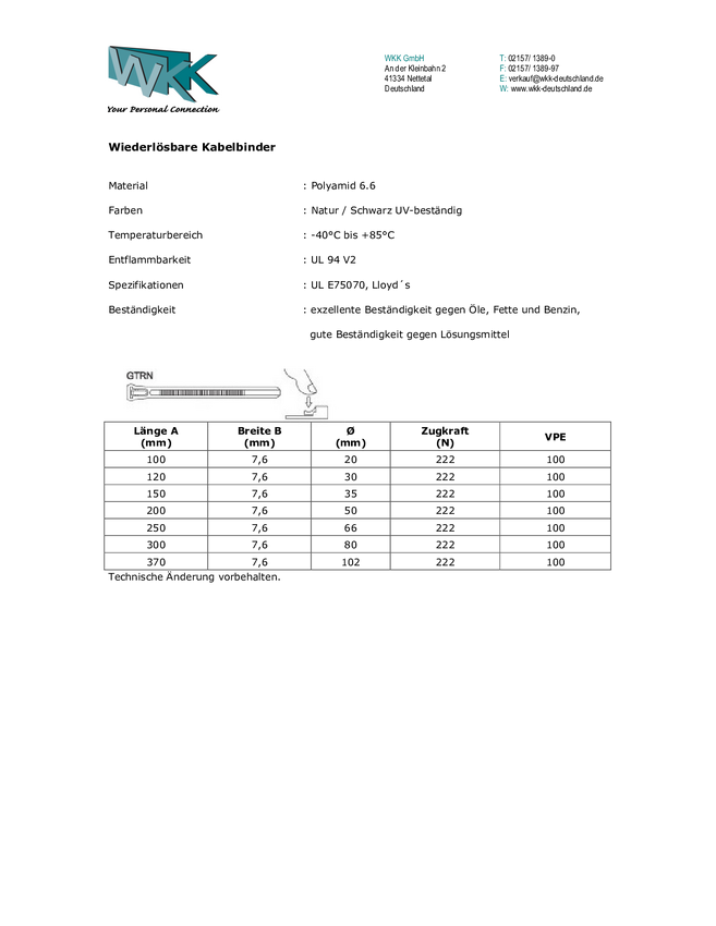 WKK 11837071 11837071 Opaska kablowa 100 mm 7.60 mm czarny produkt rozpuszczalny, stabilizacja UV, odporność na olej, od