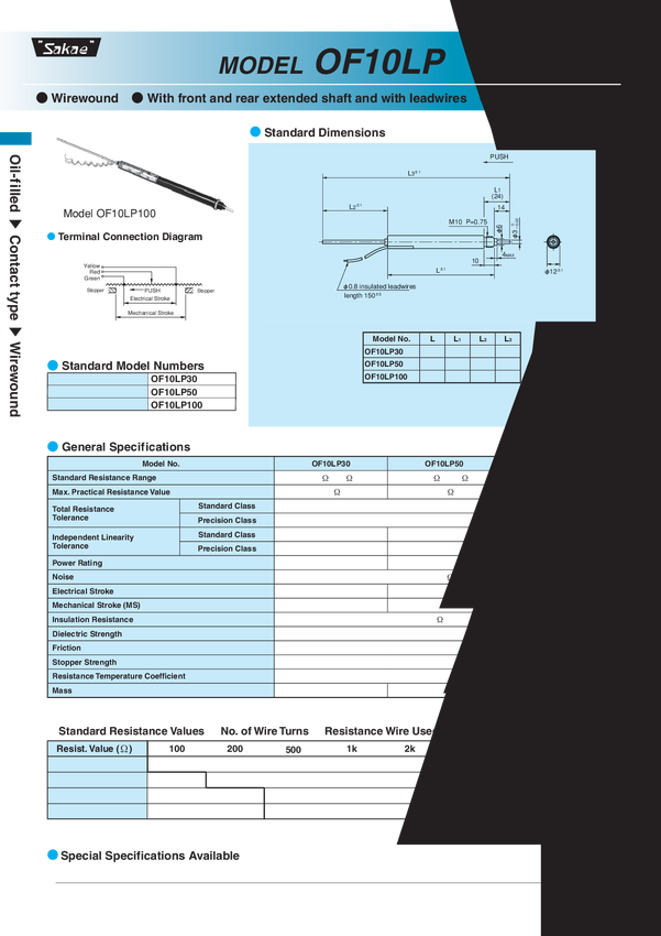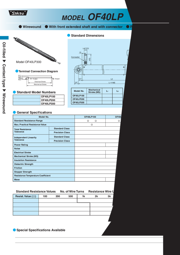 Czujnik położenia ( linear motion-potentiometer ) olejowy Drutowy, średnica 40 mm pomiar: 100, 200, 300mm Produkcja firmy SAKAE; na zamówienie wersje podobne nasze oznaczenie OF40LP