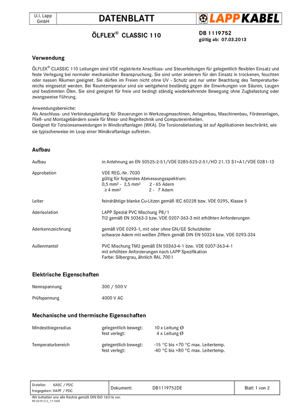 Przewód sterowniczy PCW OLFLEX Classic 110 CY
