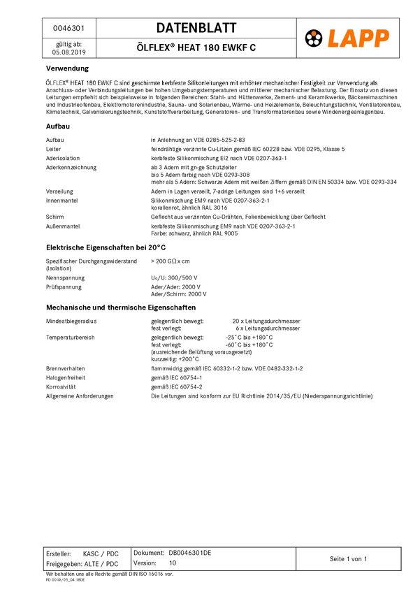 Przewód silikonowy OLFLEX® Heat 180 EWKF ÖLFLEX HEAT 180 EWKF C 4G6 LAPP 463313/500 czarny 500 m