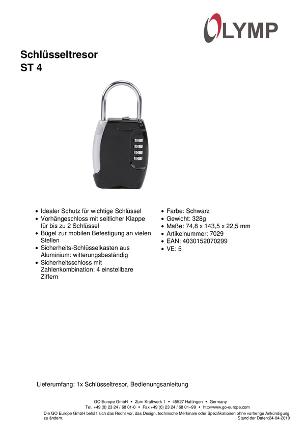 Sejf Olympia 7029, (S x W x G) 74.8 x 143.5 x 22.5 mm