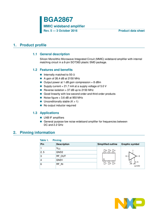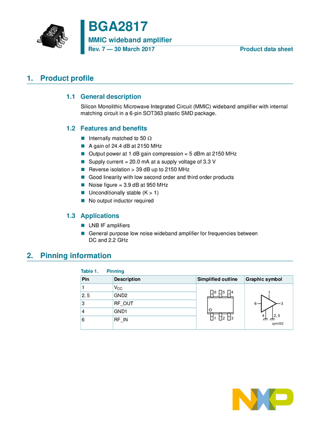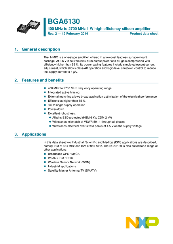 400 MHz to 2700 MHz 1 W High-Efficiency Silicon Amplifier