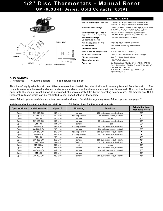 termostat 180 st F; = 82 st Celc 250V 10A