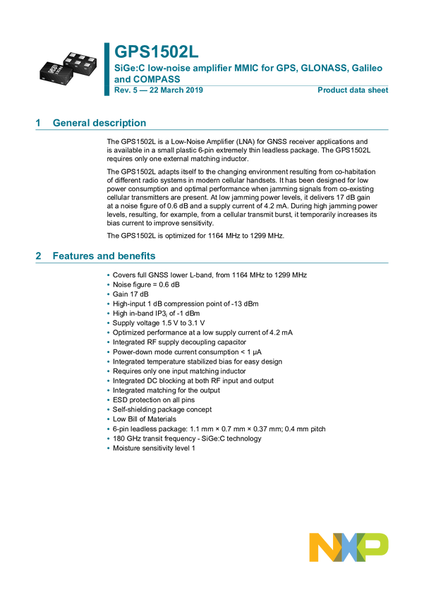 SiGe:C Low Noise Amplifier MMIC for GPS, GLONASS, Galileo and COMPASS