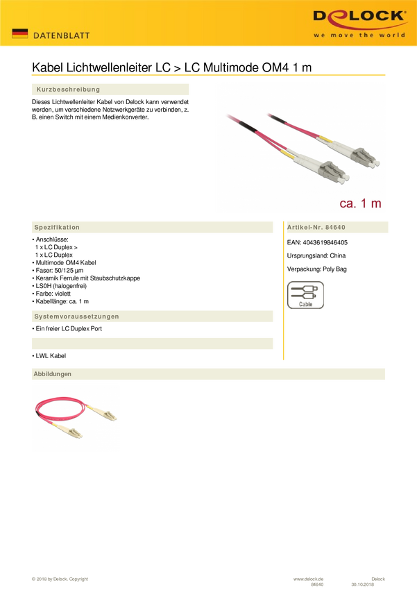 Kabel światłowodowy LC - LC wielomodowy OM4 1 m