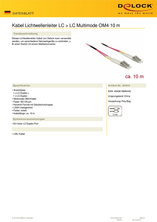 LINDY 46364 światłowodowe do światłowodów kabel 10.00 m wielobarwny Multimode OM4