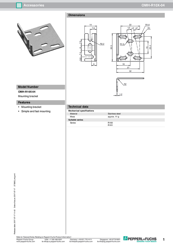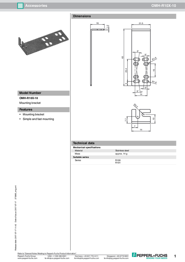 Pomoc montażowa Pepperl+Fuchs OMH-R10X-10 273880 10 szt.