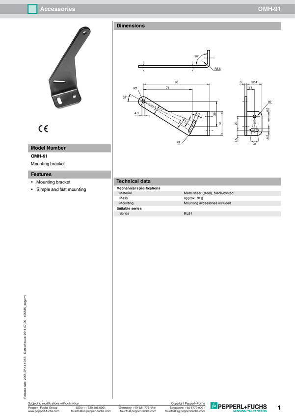 Pomoc montażowa Pepperl+Fuchs OMH-91 1.475 05 405585 5 szt.