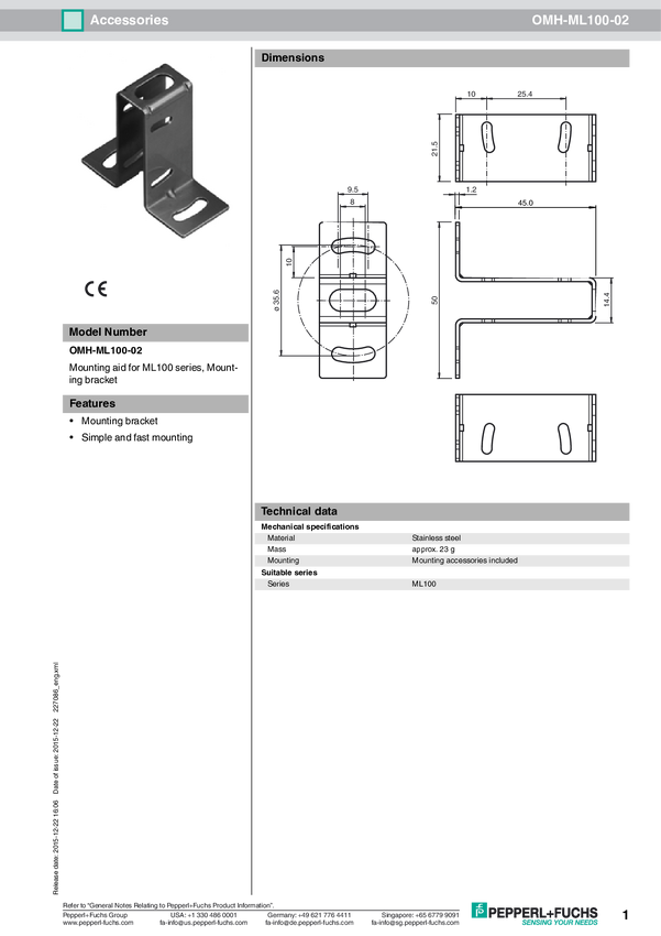 Pomoc montażowa Pepperl+Fuchs OMH-ML100-02 227086 5 szt.