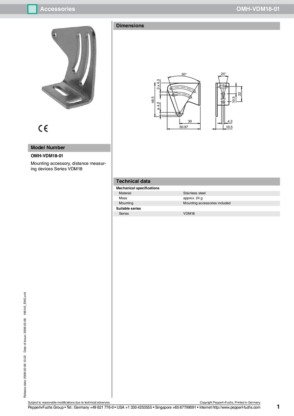 Akcesorium montażowe Pepperl+Fuchs OMH-VDM18-01 196145 5 szt.
