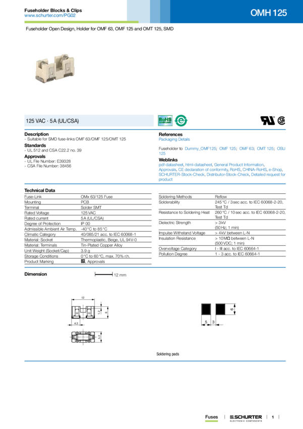 OMH 125 FUSEHOLDER OMF63/125 IP 00
