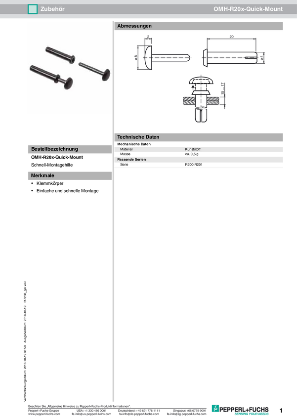 Pepperl+Fuchs 317238 Pomoc montażowa OMH-R20x-Quick-Mount 1 szt.