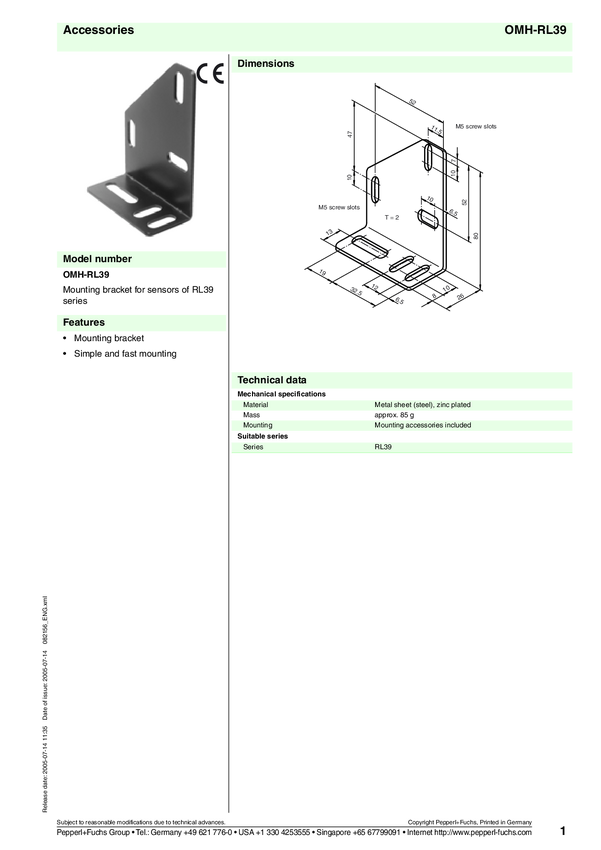 Akcesorium montażowe Pepperl+Fuchs OMH-RL39 Montag 082156 5 szt.
