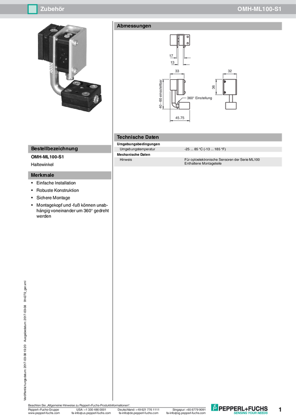 Pepperl+Fuchs 914279 Kołnierz mocujący OMH-ML100-S1 1 szt.