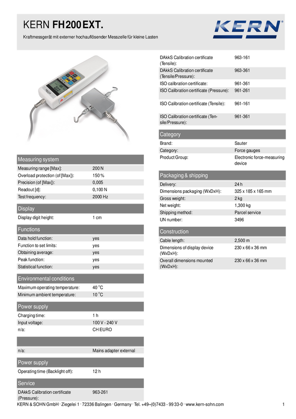 Siłomierz, niutonometr Sauter FH 200 EXT