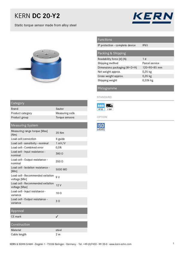 Siłomierz, niutonometr Kern DC 200M-Y2