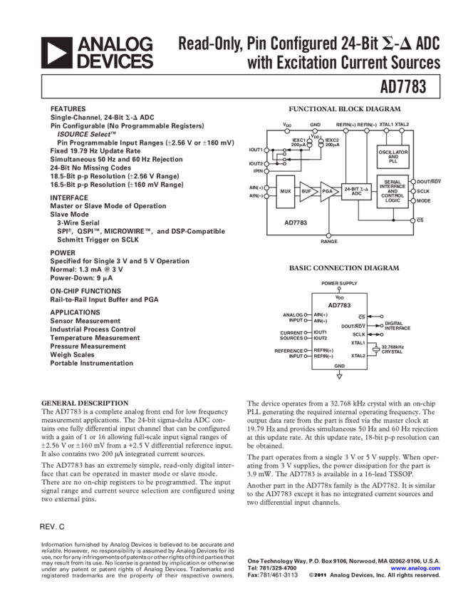 Read-Only, Pin-Configured, 24-bit Sigma-Delta ADC with Excitation Current Sources