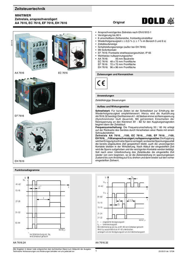 Dold 0024820 Przekaźnik czasowy, odpowiedź opóźniona EF7616.24, 0.15 - 1000 s, 1 szt.