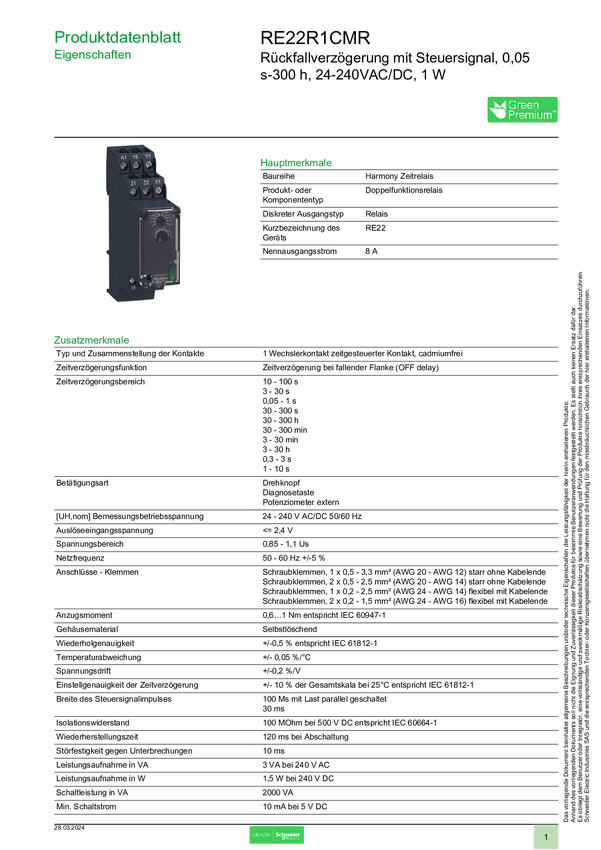 Schneider Electric RE22R1MKMR Timer opóźniający, 1 szt.
