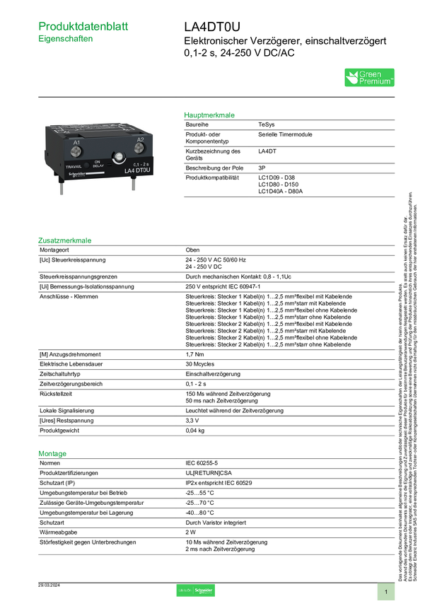 Schneider Electric LA4DT0U Timer opóźniający 1 szt.