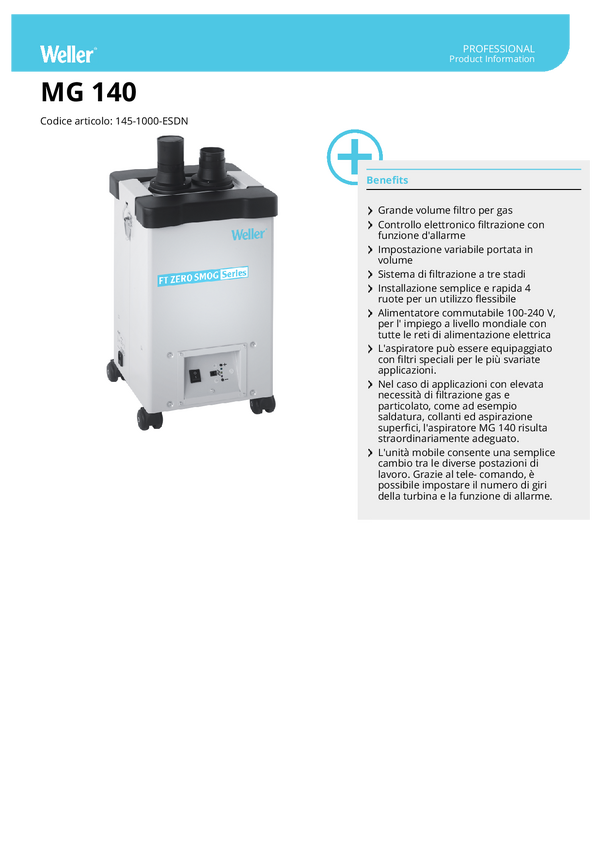 Odsysacz oparów lutowniczych Weller 145-1000-ESDN 1 szt.