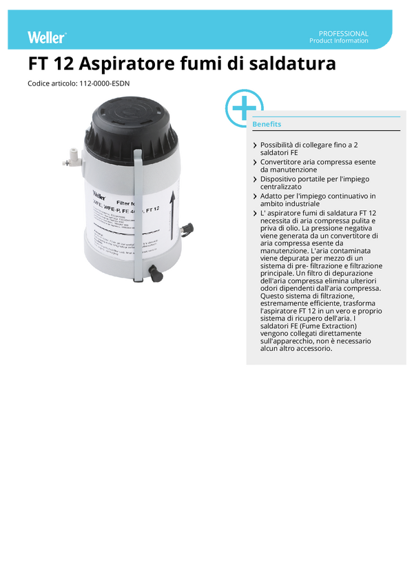 Odsysacz oparów lutowniczych Weller FT 12 1 szt.