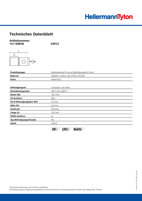 Gniazdo montażowe do opasek kablowych HellermannTyton 151-00838 przykręcany 1 szt.