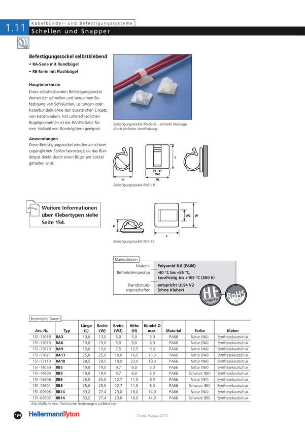 Gniazdo montażowe do opasek kablowych HellermannTyton RB5-N66-NA-C1 151-14059 2 szt.