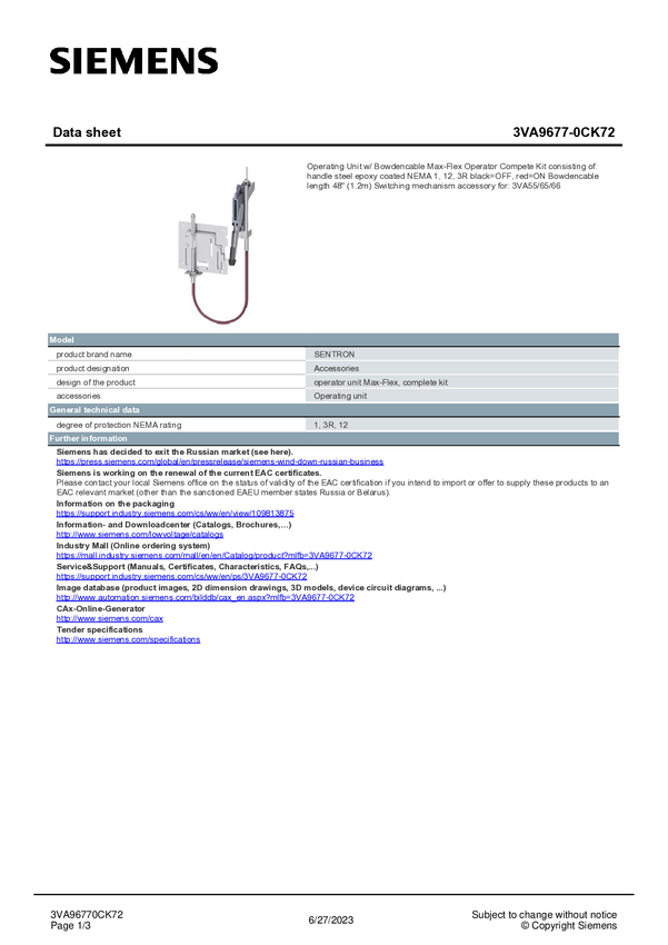 Jednostka operacyjna Siemens 3VA9677-0CK72 1 szt.