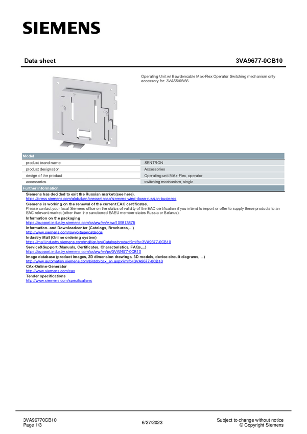 Jednostka operacyjna Siemens 3VA9677-0CB10 1 szt.