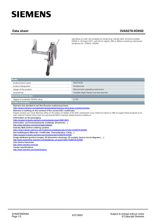 Jednostka operacyjna Siemens 3VA9278-0DK82 1 szt.