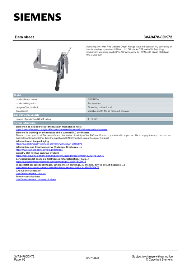 Jednostka operacyjna Siemens 3VA9478-0DK72 1 szt.